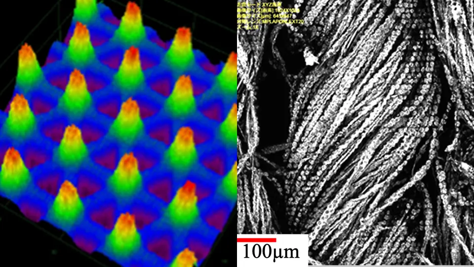 レーザー微細加工により繊維表面を改質し、抗菌性や撥水性などの独自機能を加える特殊技術を開発しました。